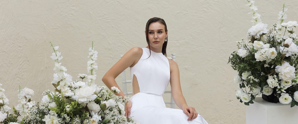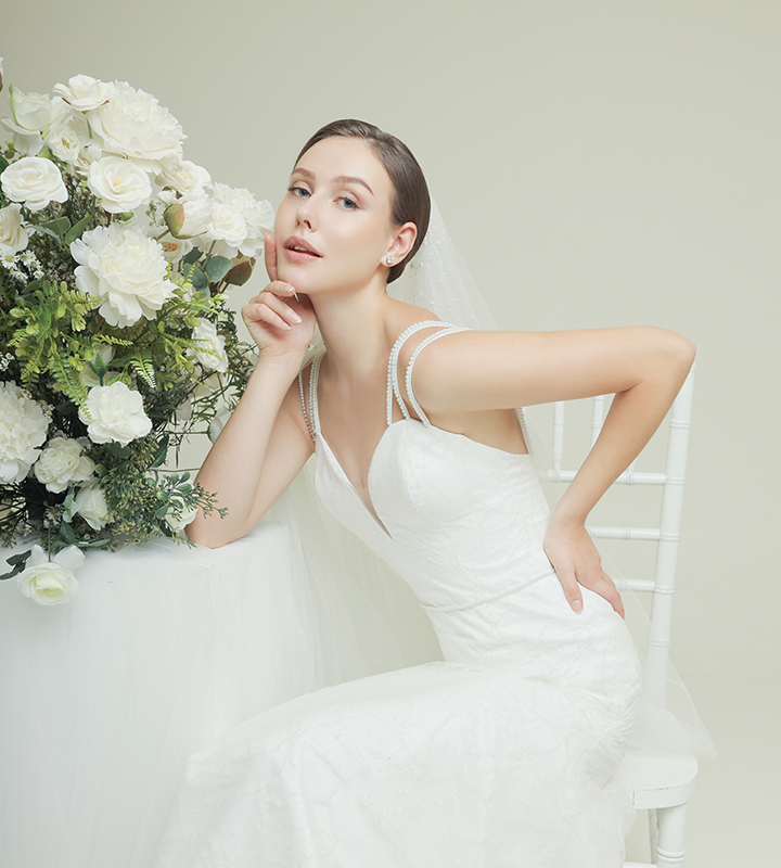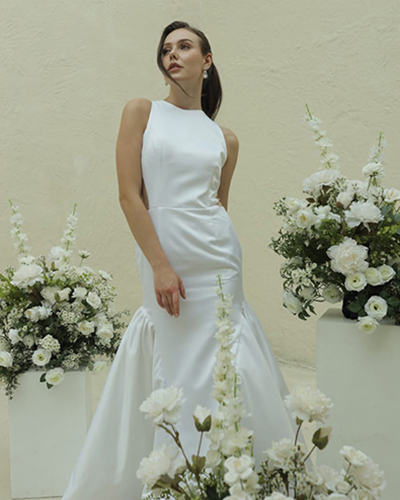 The Halter Mermaid Classic Gown is a stunning blend of sophistication and contemporary elegance, designed to make any bride feel like the epitome of grace on her special day. Crafted from luxurious plain satin, this gown features a sleek, smooth finish that exudes timeless beauty. The rich fabric drapes flawlessly over the body, creating a seamless, lustrous effect that enhances the gown's refined, polished look. The halter neckline is a striking feature, offering both support and a unique, modern touch. It gracefully frames the shoulders and highlights the collarbones, adding an element of elegance while maintaining a sense of timeless allure. The design of the halter top also creates a flattering, open back, making it a perfect balance of classic and contemporary elements. The mermaid silhouette of the gown hugs the body from the chest to the knees, accentuating the natural curves and creating a dramatic, figure-flattering shape. From the knee down, the skirt flares out into a soft, flowing train that adds an air of sophistication and movement, perfect for making a grand entrance. The clean lines and structured fit allow the gown to highlight your figure while still providing comfort and ease of movement throughout the day. This Halter Mermaid Classic Gown is ideal for the bride who desires a minimalist yet impactful look, where every detail reflects pure elegance. Whether walking down the aisle or dancing the night away, this gown ensures that you'll look and feel radiant on your most memorable day. Its simplicity allows for personalization with accessories or keeps the focus entirely on the beauty of the gown itself.